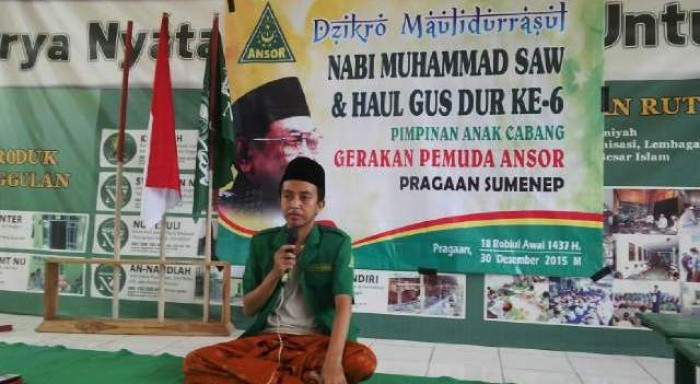 Sumenep – Pimpinan Anak Cabang (PAC) Gerakan Pemuda Ansor Pragaan, Sumenep Madura melangsungkan acara dzikro maulidurrasul Nabi Muhammad Saw dan haul almarhum KH Abdurrahman Wahid atau Gus Dur, Rabu, 30 Desember 2015. Acara dimulai dengan tahlil khusus Gus Dur dan shalawat nabi.