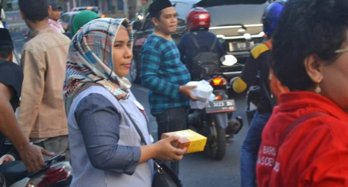 Kegiatan bagi takjil itu disambut antusias warga para pengendara bermotor. Ada sebanyak 750 paket takjil dibagikan kepada warga.