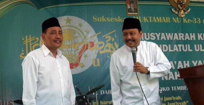 Ketua Panitia Daerah Muktamar NU ke-33, H Saifullah Yusuf (kanan) bersama Ketua PWNU Jatim KH M Hasan Mutawakkil Alallah (santrinews.com/saif)