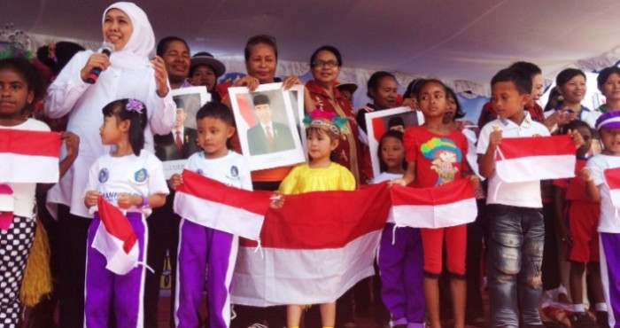 Menteri Sosial Khofifah Indar Parawansa bersama anak-anak pada acara peringatan Hari Anak Nasional 2015, di Lapangan Upacara Gunung Merah kompleks Kantor Bupati Jayapura (santrinews.com/ist)