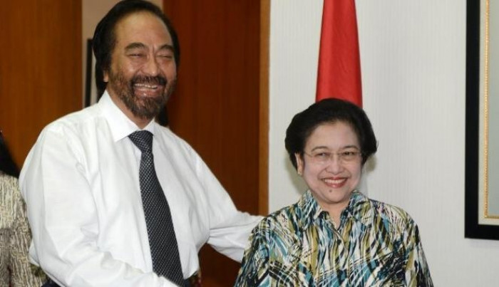 Ketua Umum Partai NasDem Surya Paloh bersama Ketua Umum PDI Perjuangan dalam sebuah pertemuan di Jakarta (santrinews.com/antara)