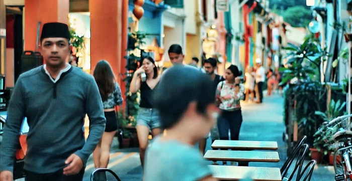 KH Zahrul Azhar Asad alias Gus Hans saat berjalan-jalan di Haji Lane di Singapura (santrinews.com/ist)